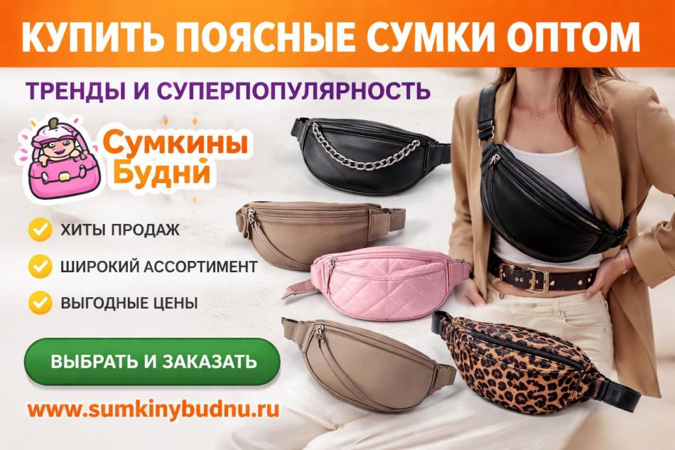 Не ждите начала сезона — действуйте на опережение. Успейте заказать поясные сумки оптом прямо сейчас и предложите своим покупателям удобство, от которого невозможно отказаться. «Сумкины Будни» — ваш надежный мост к процветающему бизнесу!